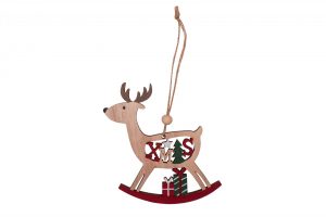 Wooden xmas deer decoration 9 cm Isabelle Rose
