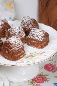 Spoon batter into silicone mould for around 2/3 of a house. Place silicone mould on a baking pan and bake for 50 minutes or bake until toothpick inserted in the center comes out clean. Cool upright in mould for 10 minutes.