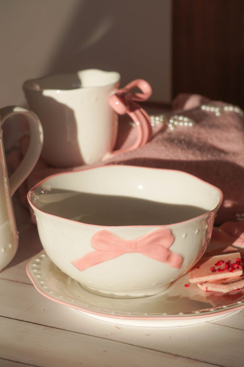 Bowl in white color with pink ribbon decoration – Ribbon Grace.
