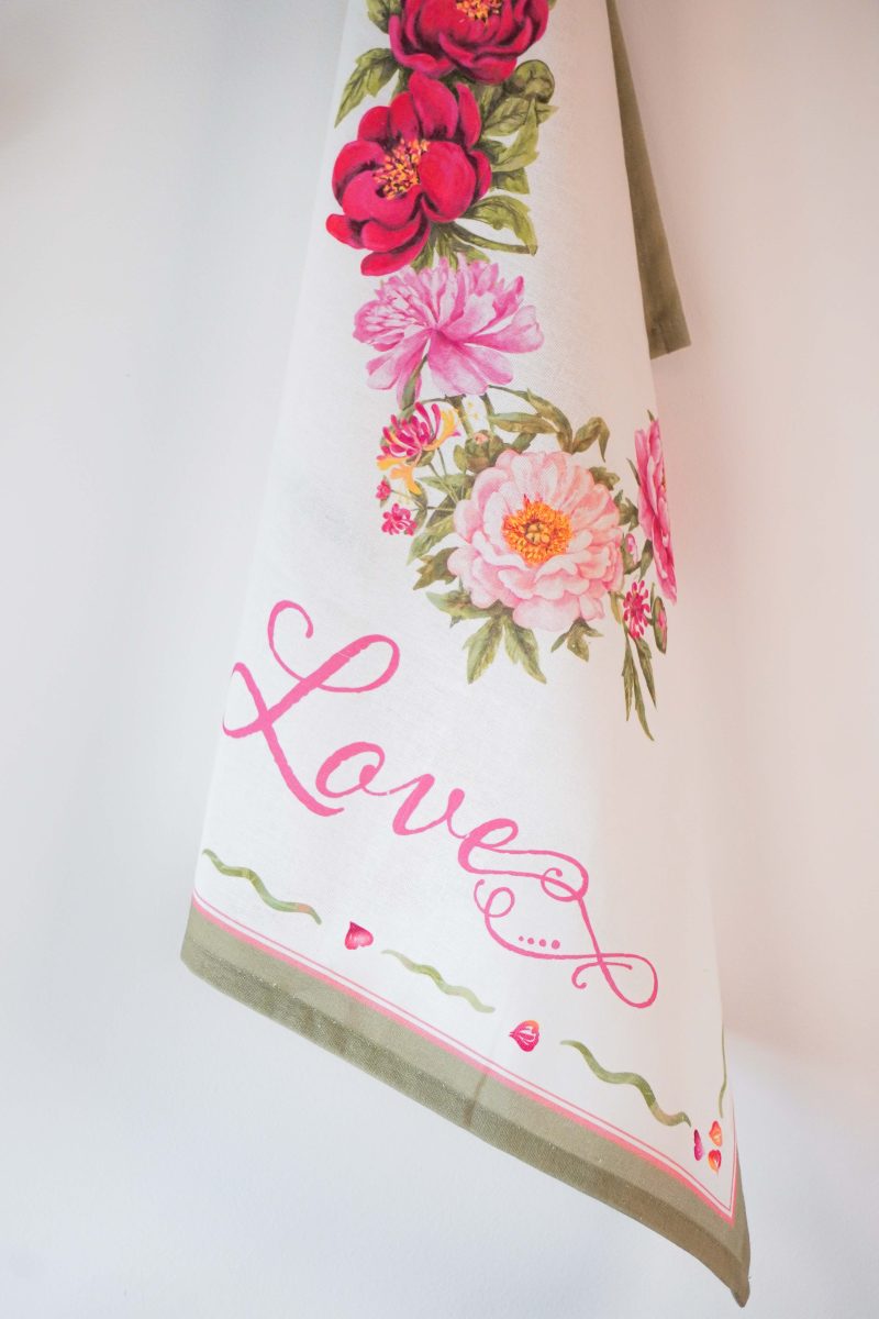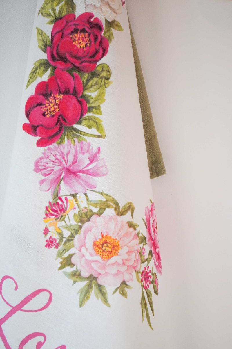 Kitchen towel with lovely Peony flowers design.