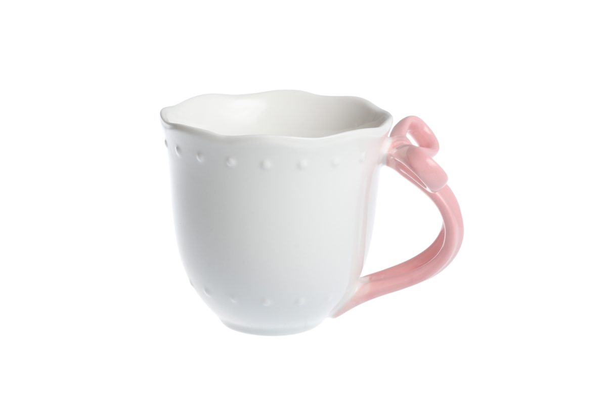 Mug in white color with pink ribbon decoration – Ribbon Grace.