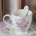 Cute porcelain mug with handle and nice retro shape with Flora design.