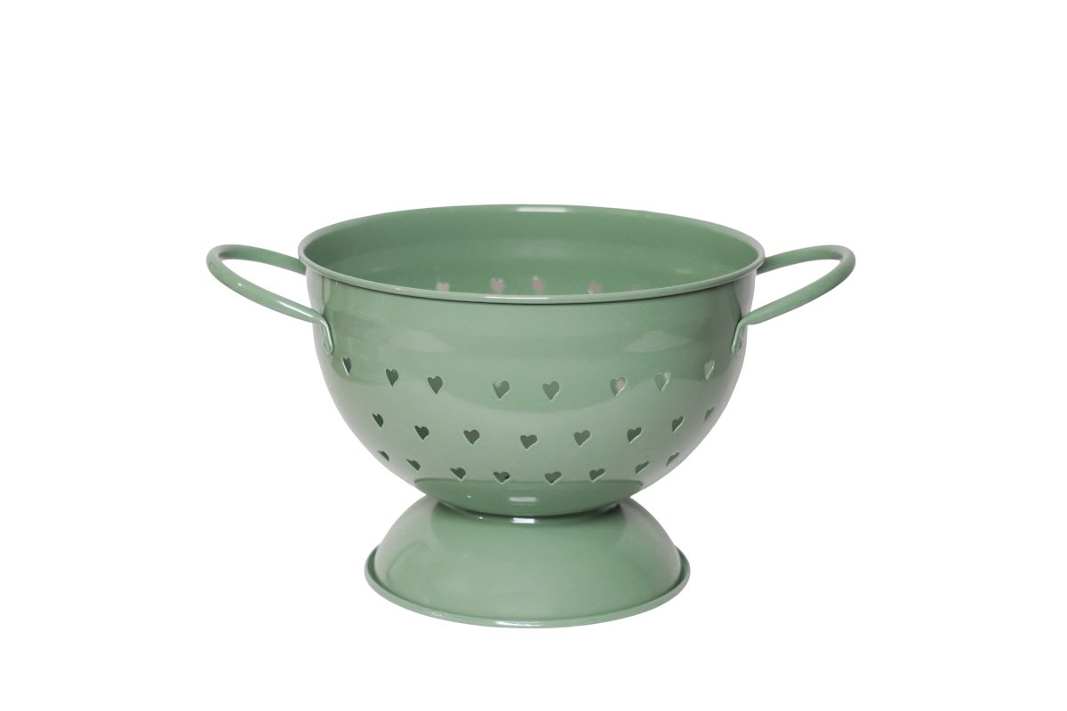 Sage colander with cute hearts all over for an easy draining. This colander can also be used as a bread basket or a basket for fruits or vegetables.